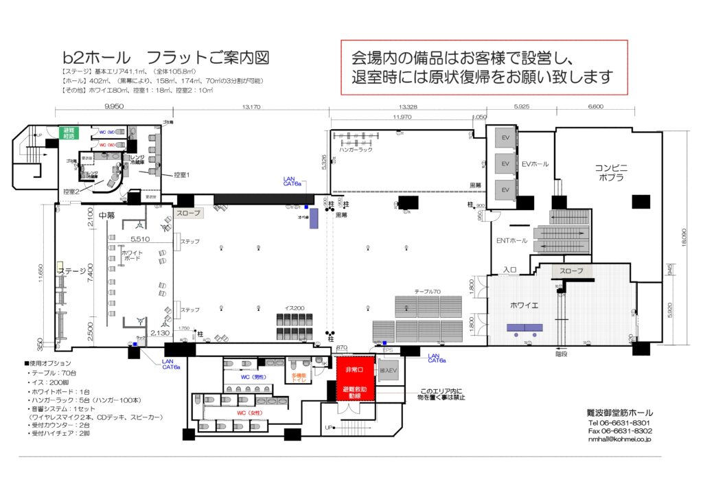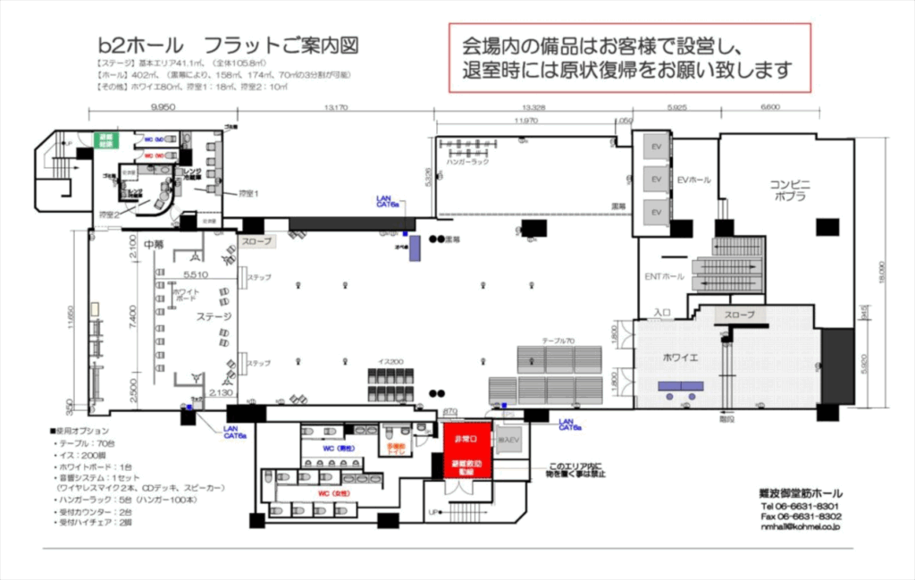 会場の設営の際に、ご参考下さい。 部屋の見取り図をご利用の方はこちらからダウンロード