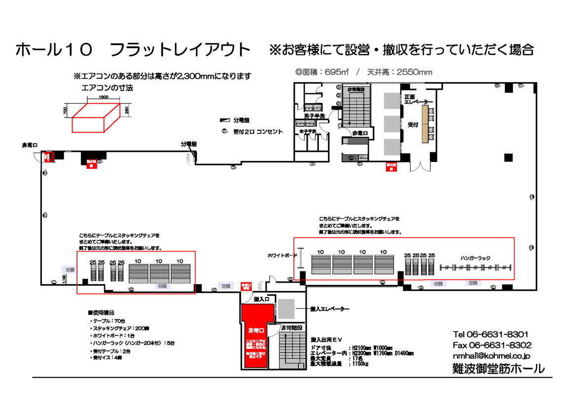 貸出初期状態の基本レイアウト例(チェア・テーブル未設営状態)