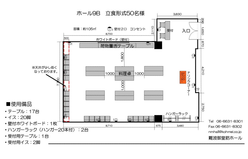 貸出初期状態の基本レイアウト例(チェア・テーブル未設営状態)
